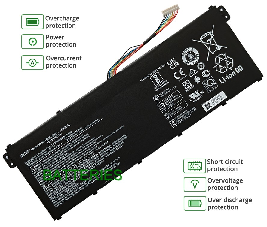 - Notre batterie Acer ASPIRE 5 A515-58M-75FB contient des cellules de batterie de qualité A pour assurer une durée de vie de la batterie plus longue et plus de cycles de charge.